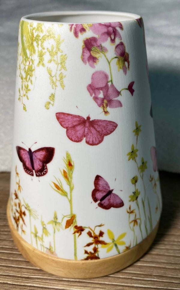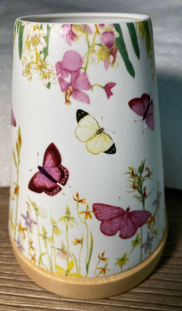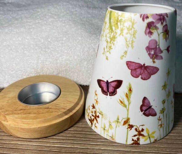 This decorative lantern appeals to home decor enthusiasts and those interested in botanical-themed accessories. The delicate butterfly and floral imagery makes it particularly attractive to collectors of nature-inspired decor items.