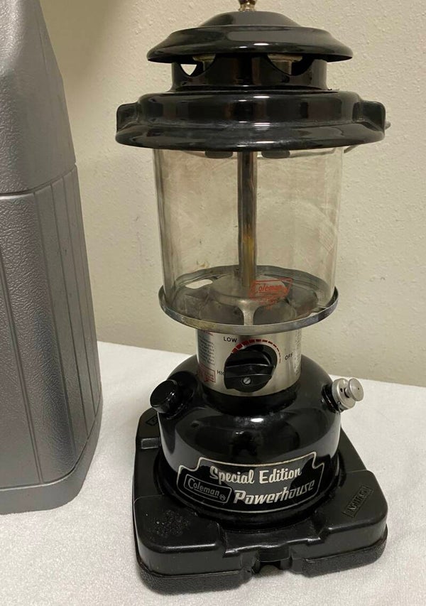 This Coleman Powerhouse lantern was manufactured around 1988 as a special edition version of their popular portable gas lanterns.